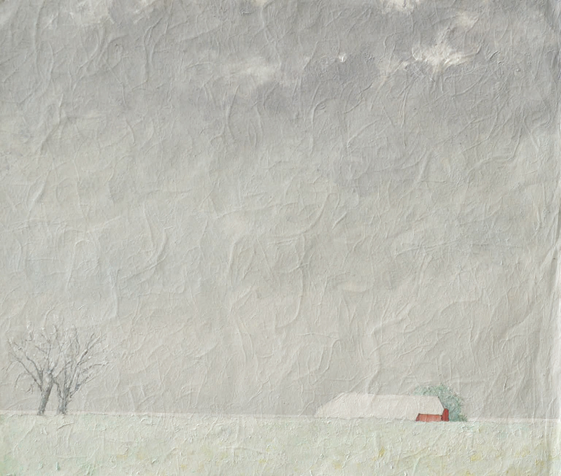 Januar: "Nebeliger Wintertag", Öl auf Japanpapier, 31 x 36,5 cm, 2025