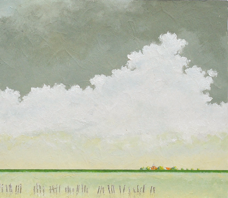 März: "Vorm Deich", Öl auf Japanpapier, 32 x 37 cm, 2025