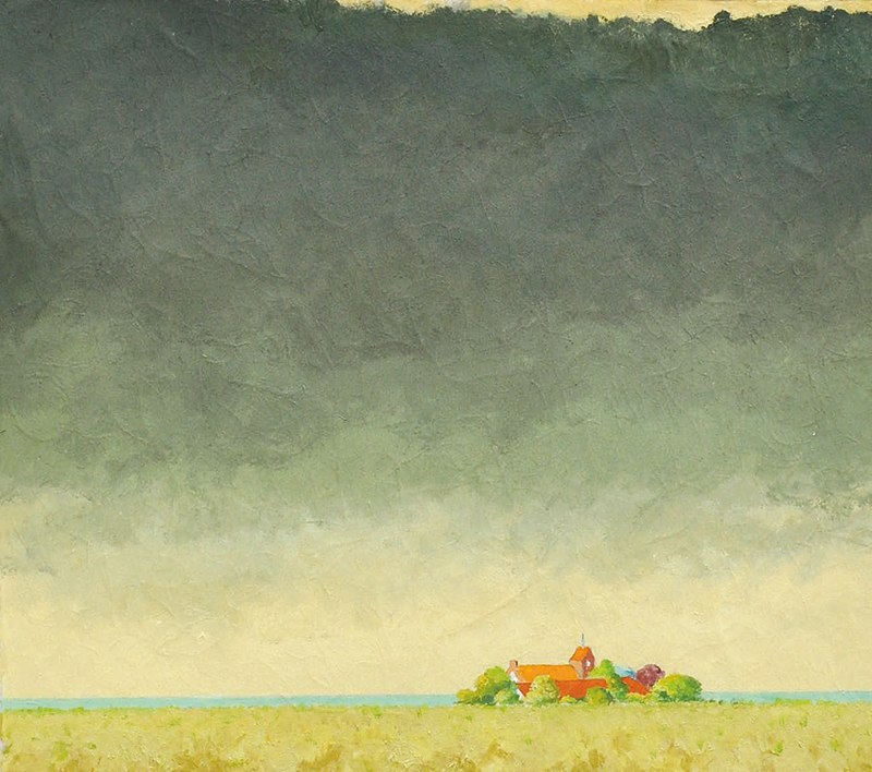Mai: "Regenwetter in der Marsch", Öl auf Japanpapier, 32,5 x 37 cm, 2025