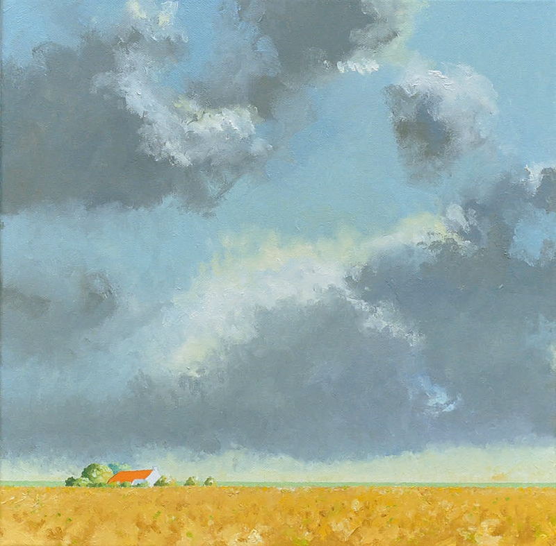 Juli: "Wolken über dem Kornfeld", Öl auf Leinwand, 40 x 40 cm, 2025
