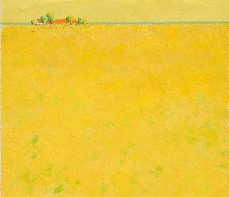 August: "Hochsommer", Öl auf Japanpapier, 32 x 36,5 cm, 2025