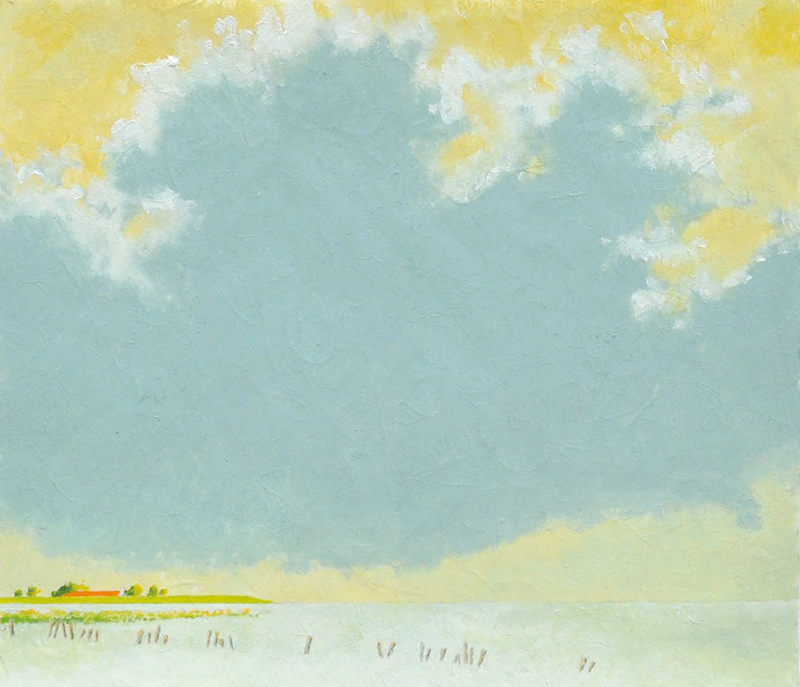 September: "Deichvorland", Öl auf Japanpapier, 32 x 37 cm, 2025