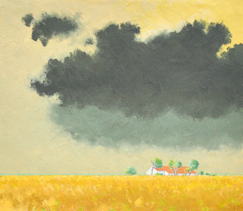 Oktober: "Aufziehender Regen", Öl auf Japanpapier, 32 x 36,5 cm, 2025